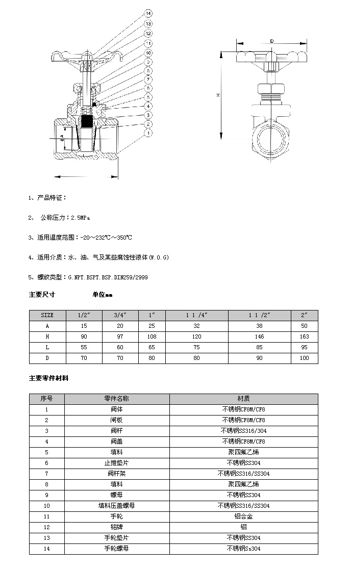 | Z11H-25 | 2.5 | 3.8 | 2.8 | 2.5 | 1.4 | ≤425 | 水、蒸汽、油品等非腐蝕性介質 |