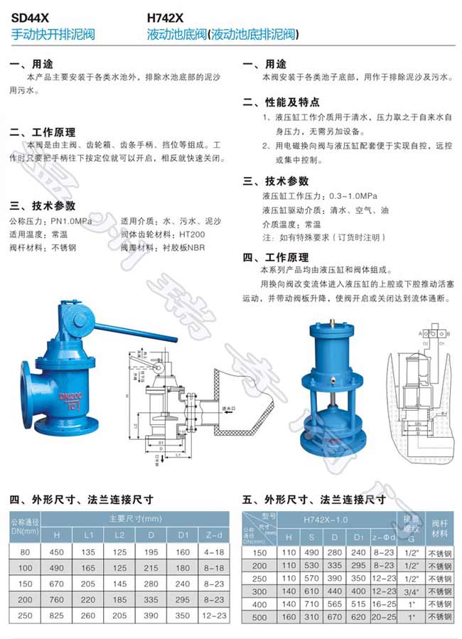 安裝在各類沉淀池的底部壁外,用以排除池底的泥沙及污物。
